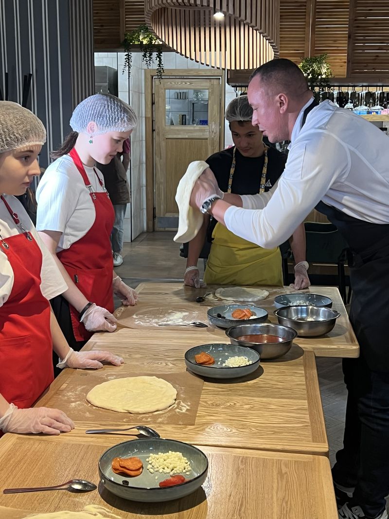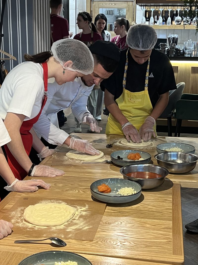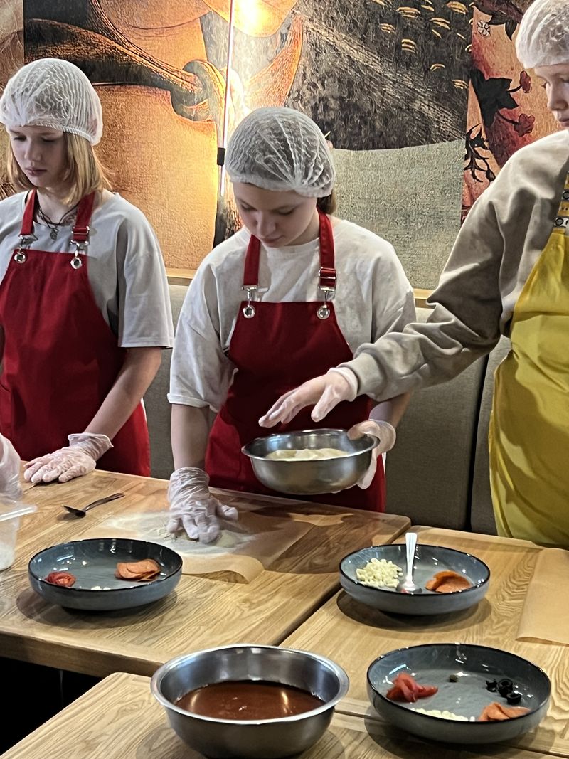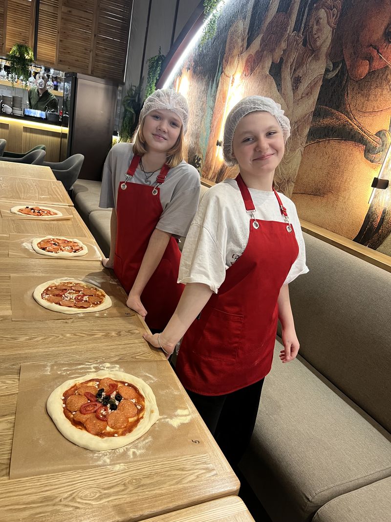 итальянскую пиццу и лимонады. Они сами раскатывали тесто, выбирали начинку,