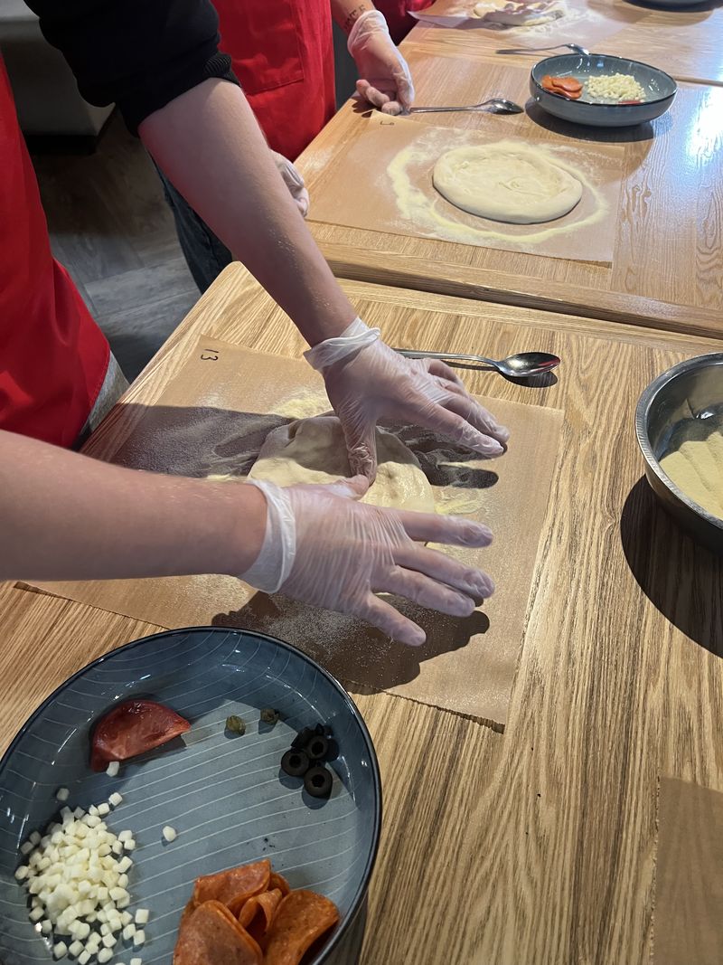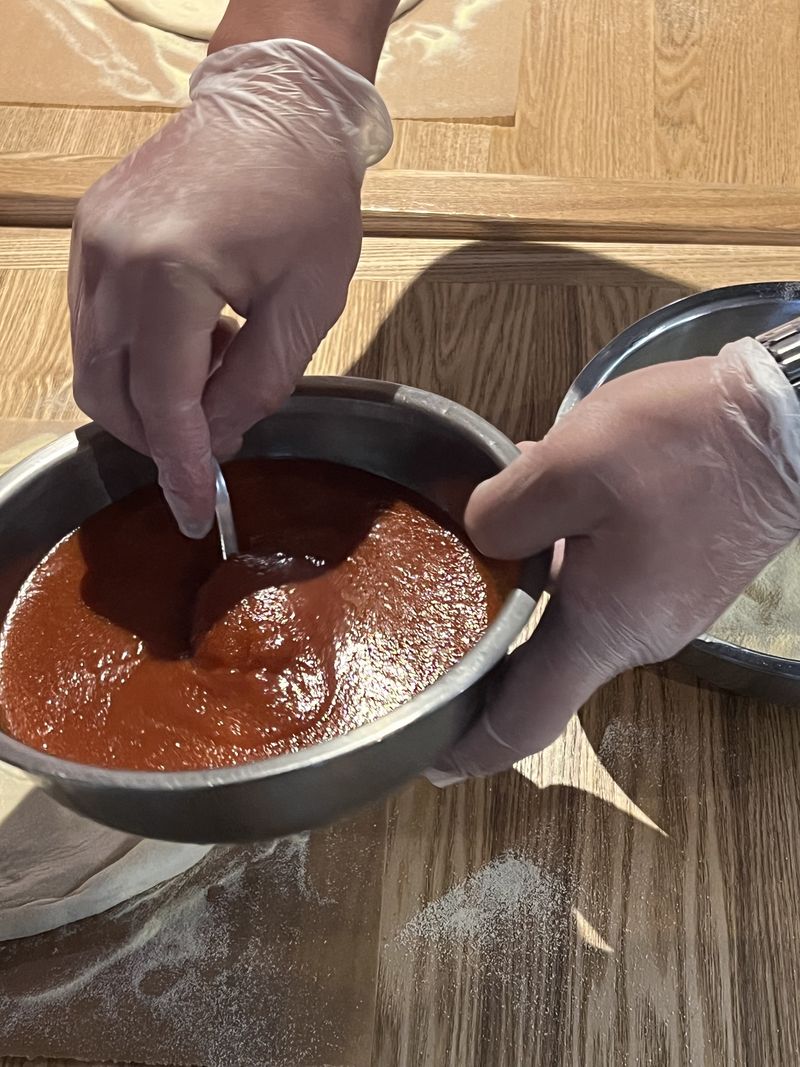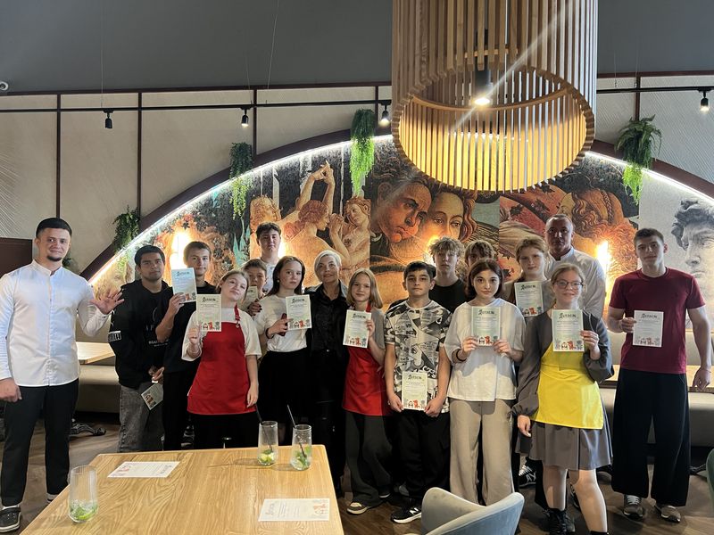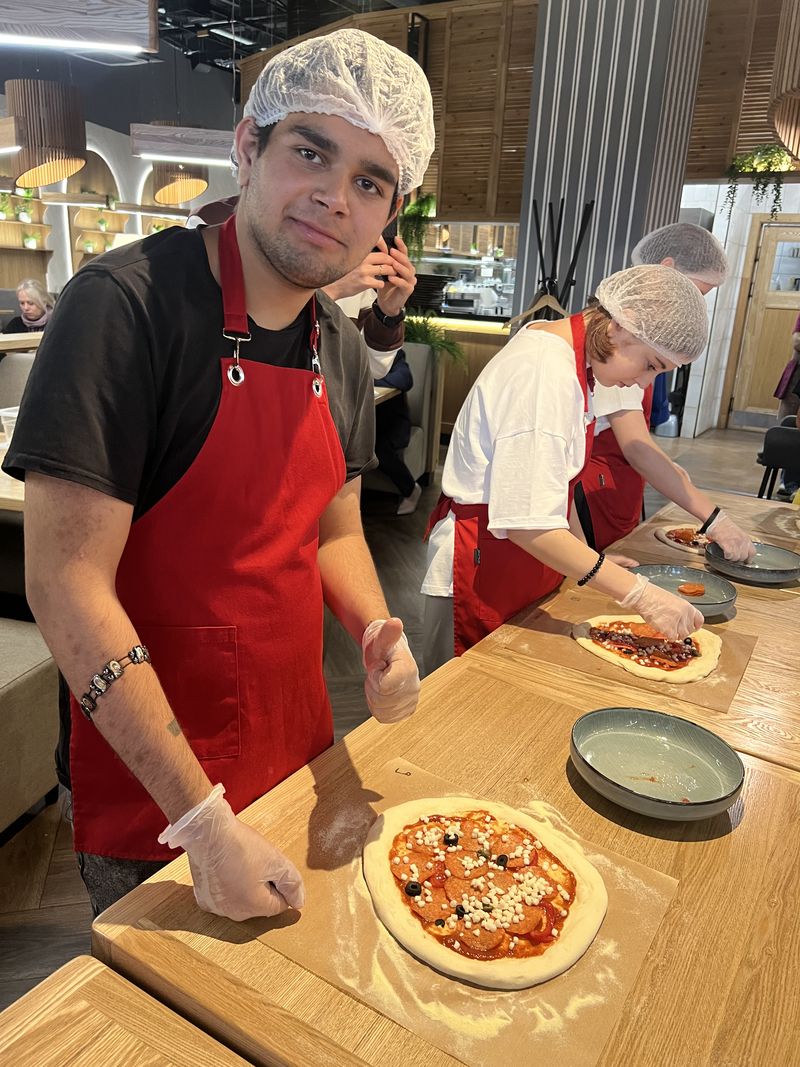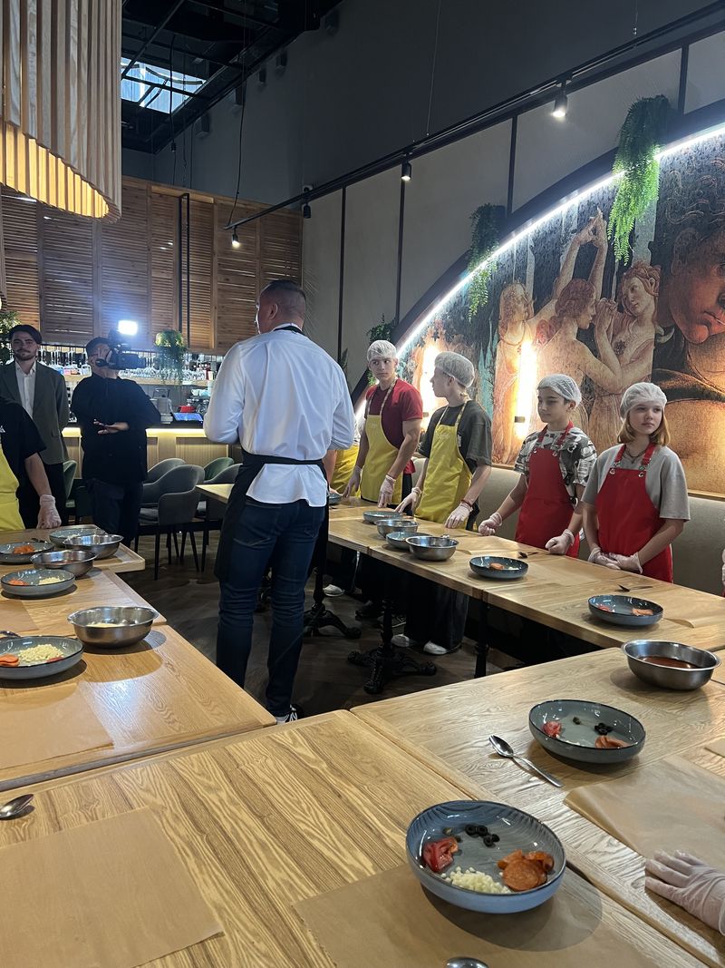 итальянскую пиццу и лимонады. Они сами раскатывали тесто, выбирали начинку,